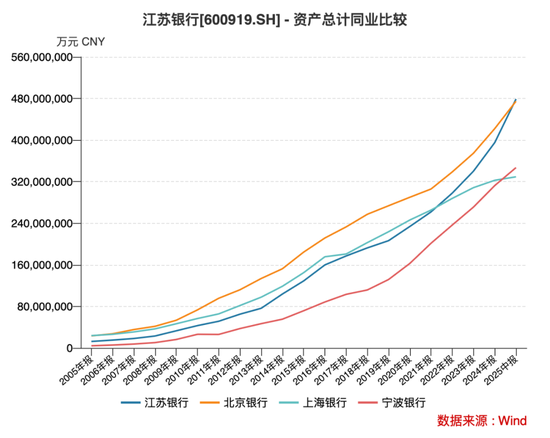 从鸿沟、功绩到市值,一经的城商行“千大哥三”,终于熬成了彻头彻尾的年老。 在此之前,2024年末,宁波银行钞票鸿沟初次高出上海银行,参加城商行三甲之列。 城商行四巨头座席重排:江苏银行、北京银行、宁波银行与上海银行。 01 参加2025年,江苏银行火力全开。 在年头瑕疵迈过4万亿大关之后,江苏银行马不竭蹄向5万亿决骤,一季度新增钞票鸿沟5000亿,到二季度末,其钞票鸿沟4.79万亿元,增速21.16%,远高于行业平均水平。 北京银行并非莫得危险感,本年以来相似开启了频年来最快的一轮推广,上半年总钞票较年头增长12.53%,终究敌不外江苏银行的激进。 收成于快速扩表,上半年,江苏银行总营收448.64亿元,同比增长7.78%。同时,北京银行营收362.18亿元,同比增长1.02%;上海银行营收273.44亿元,同比增长4.18%。 从盈利来看,江苏银行上半年已毕归母净利润202.38亿元,同比增长8.05%,增速高于北京银行的1.12%和上海银行的2.02%,进一步扩大逾越上风。 对北京银行和上海银行而言,江苏银行的可怕之处不仅在于鸿沟逾越,且净息差高一大截。上半年,江苏银行净息差达1.78%,远超北京银行(1.31%)和上海银行(1.15%)。 还有钞票质地,上半年,江苏银行不良贷款率0.84%,同时北京银行不良率1.30%,上海银行不良率1.18%;拨备隐蔽率方面,江苏银行相似大幅逾越这两家银行。